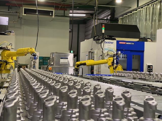ロボットによる自動化により、20時間稼働を実現(加工→洗浄→カメラによる切粉チェック)