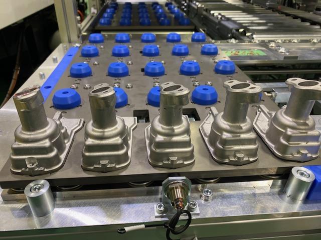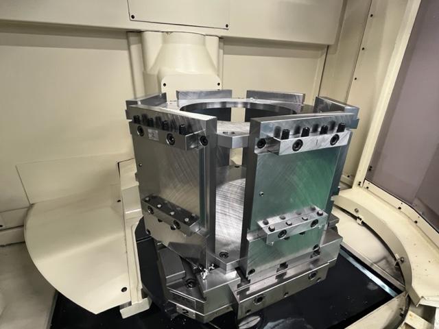 多数個取りの治具(3個、6個)とパレットチェンジ機構を組み合わせることで、夜間を含めた長時間の無人加工を実現