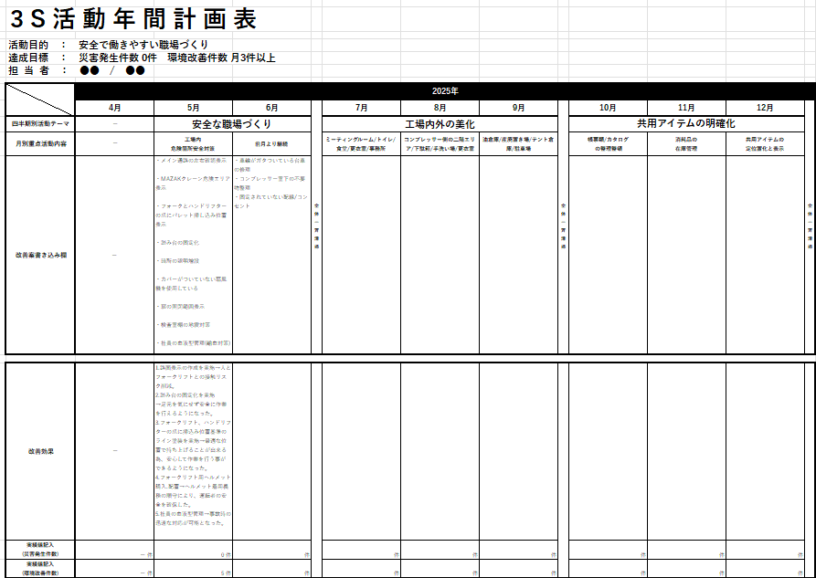 これらの活動を通じて、整理・整頓・清掃・清潔・躾(しつけ)のレベル向上を図り、「働きやすい職場づくり=良い製品づくり」 につなげています。